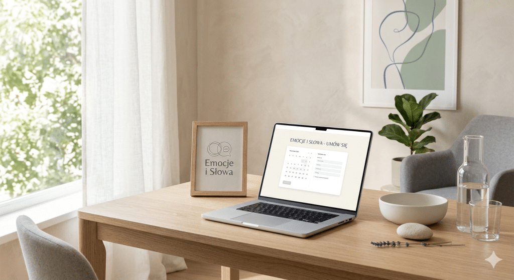 Wizytę można umówić przez formularz rejestracyjny w zakładce „Umów się” na stronie www.emocjeislowa.pl
